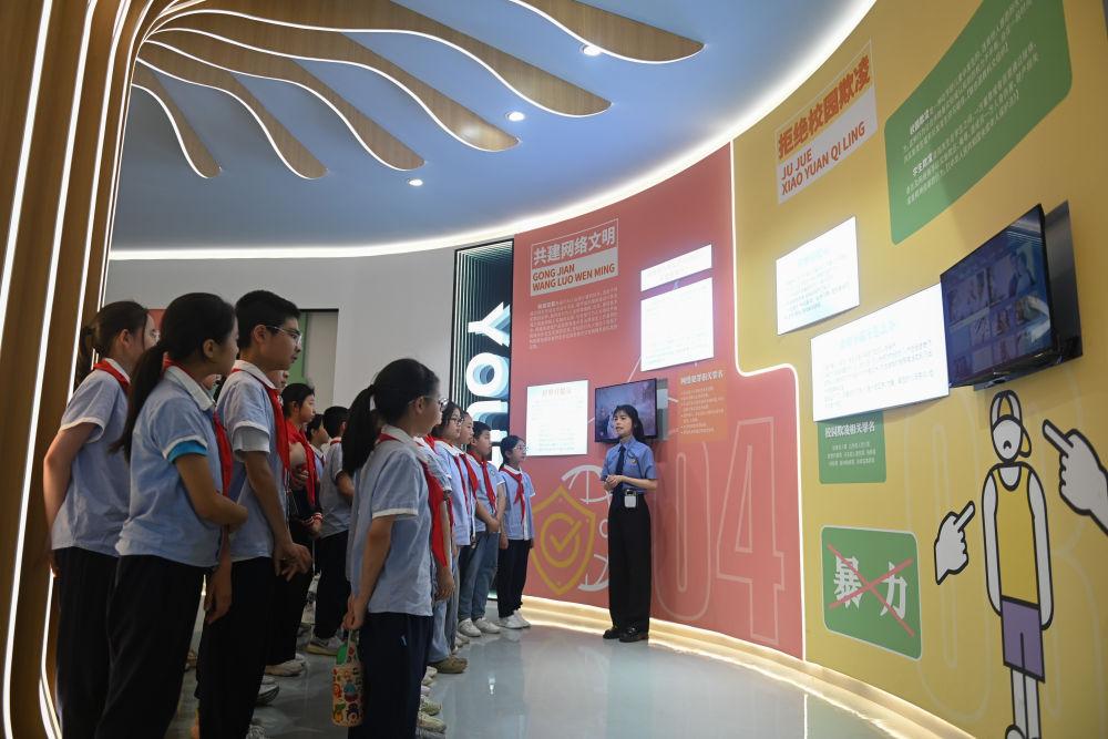 浙江省台州市仙居县安洲小学的学生在未成年人法治教育基地了解防校园欺凌的法律知识。新华社记者 黄宗治 摄