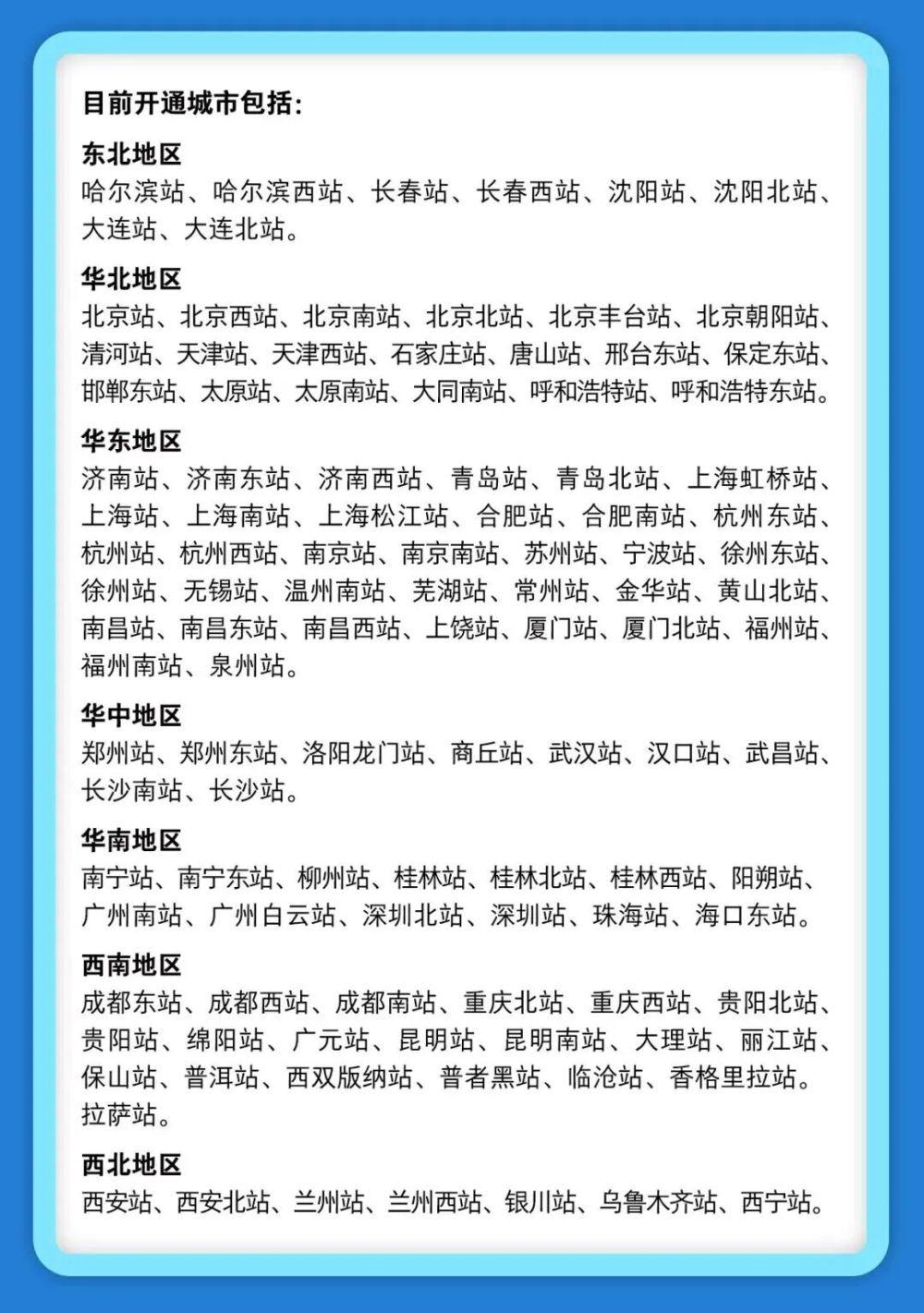 中铁快运自1月15日起扩大“轻装行”服务试点范围,新增哈尔滨、长春、天津、石家庄、西安、南昌、南宁、乌鲁木齐、拉萨等城市的92个车站,总数达到111个,基本覆盖全国省会城市、直辖市、计划单列市,减轻旅客携带大件行李负担,让乘坐火车出行更轻松。