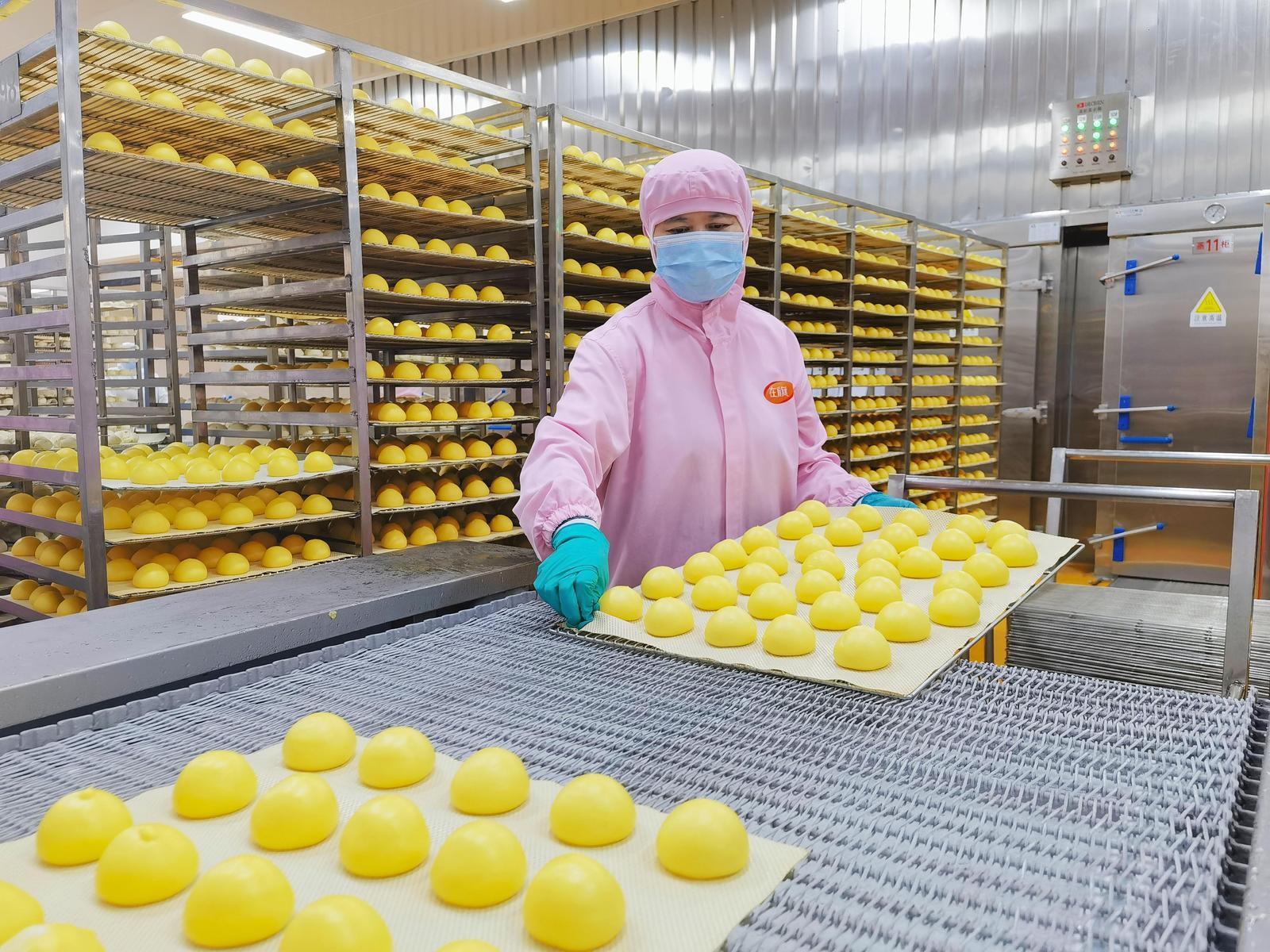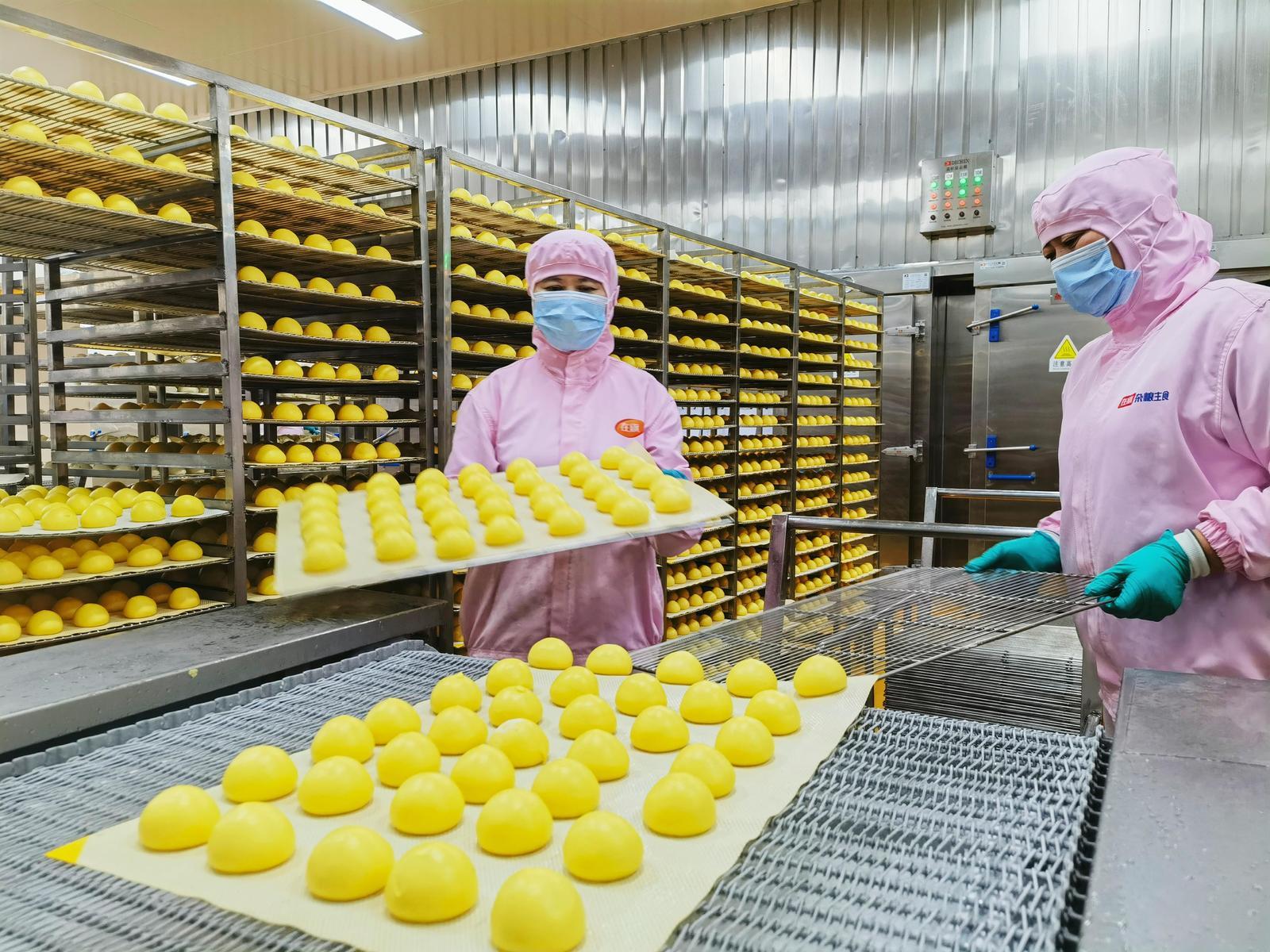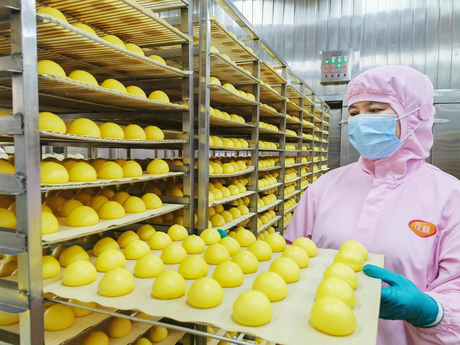 图为秦皇岛在旗生态食品有限公司员工正在蒸制车间赶制非遗黏豆包年货订单。科技日报记者 陈汝健 摄