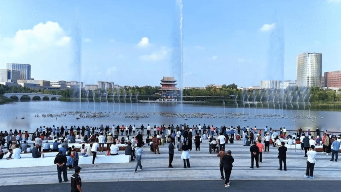 市民和游客在雄安新区金湖公园内游览(2025年10月3日摄,无人机照片)。新华社发