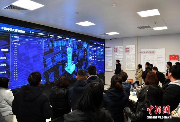 图为参会人员在中国中化大厦消防监控中心参观。中新社记者 韩冰 摄
