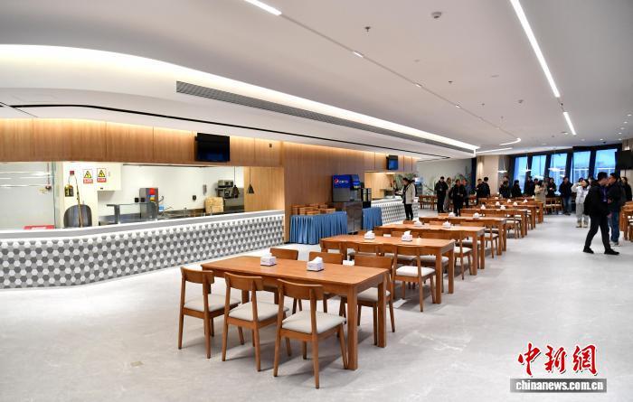 图为参会人员在中国中化大厦餐厅参观。中新社记者 韩冰 摄