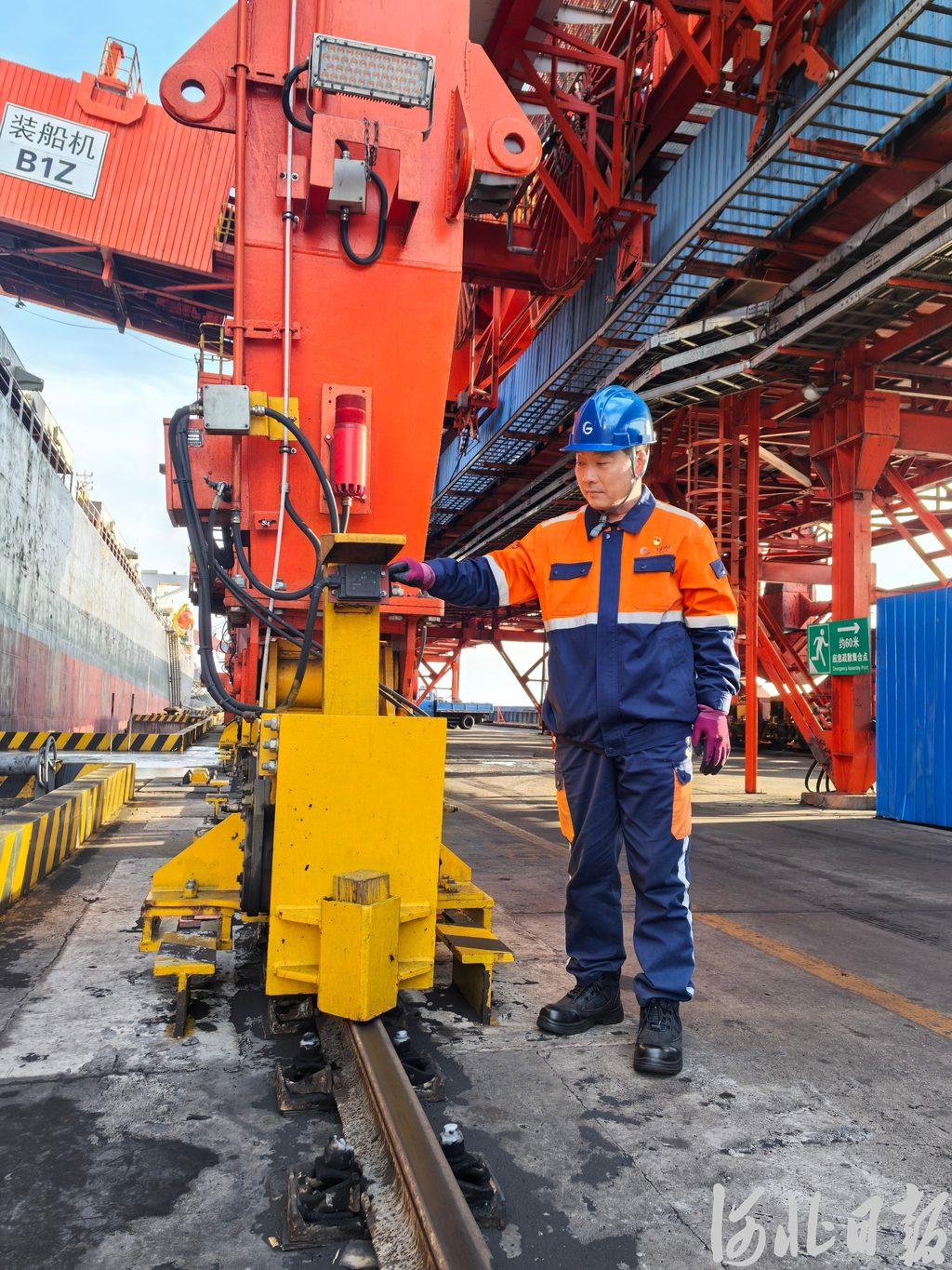 1月19日,省人大代表、河北港口集团秦皇岛港股份有限公司第二港务分公司装船一部副部长李伏玉在码头检查装船设备运行情况。河北日报记者 宋柏松 摄