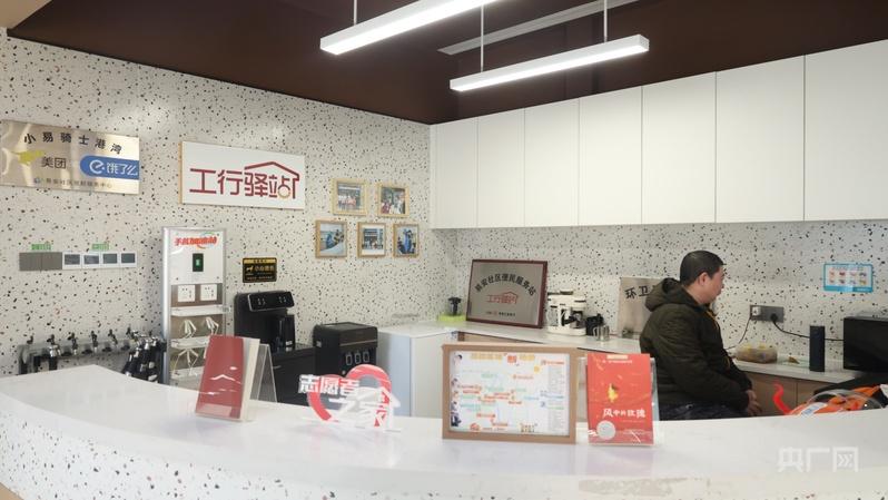 下午2点,冬日的寒意依然笼罩着大地。外卖骑手苏志远正在易安片区的一处暖“新”驿站里吃饭,他刚刚送完几个午餐订单,来这里热饭、接水、午休。