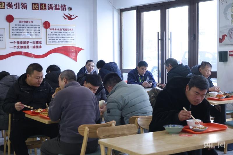 临近中午12点,食堂里坐满了前来就餐的人群。谈笑声、碗筷声交织,氤氲的热气,构成冬日最踏实的烟火图景。