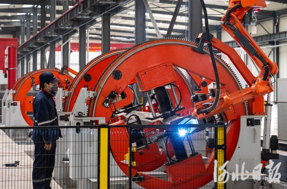 1月4日,唐山陆凯科技有限公司大型成套筛分装备数字化制造基地,工人在生产线上作业。河北日报记者赵杰摄