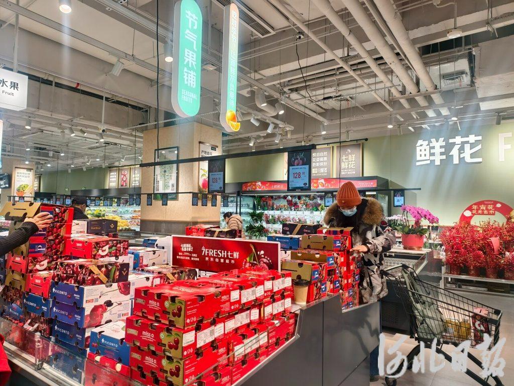 近日,京东七鲜超市石家庄首店内,市民在选购水果。河北日报记者贾梦宇摄