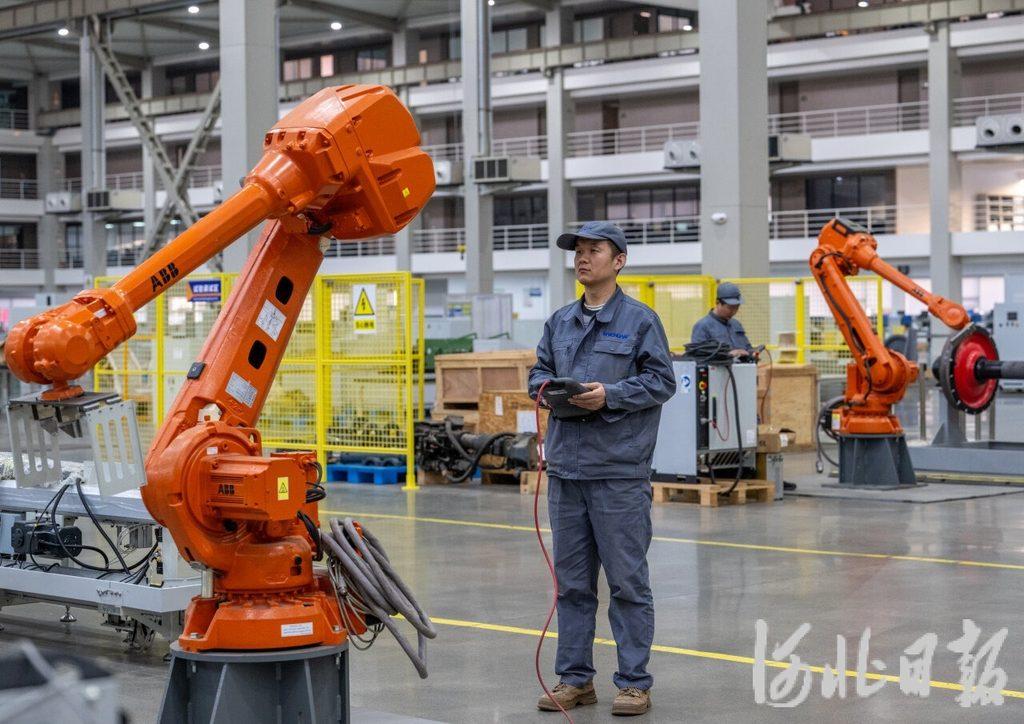 1月6日,唐山百川机器人共享制造工厂,技术人员在调试机器人设备。河北日报记者赵杰摄