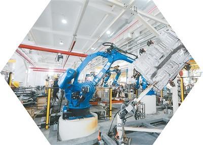 工业机器人在江苏省江都高新技术产业开发区一家汽车配件制造企业的智能生产线上作业。孟德龙摄(人民视觉)