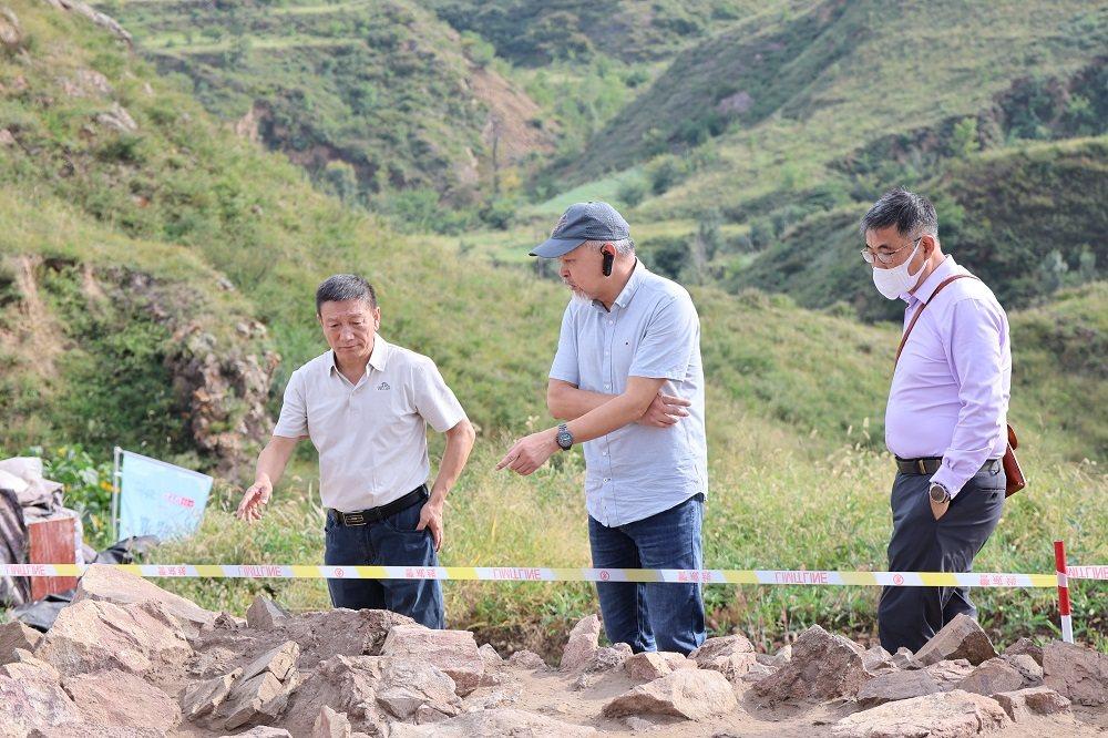 2025年9月9日,专家参观郑家沟遗址一号积石冢。 河北省文物考古研究院供图