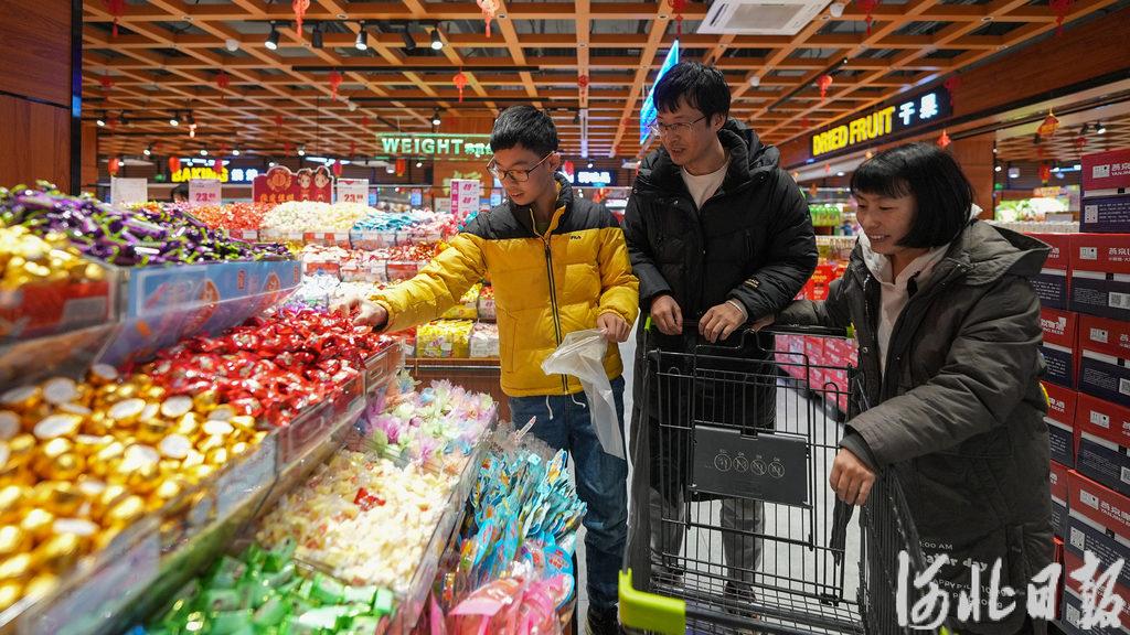 2月6日,窦则胜和家人在雄安奥特莱斯挑选年货。河北日报见习记者 李畅 摄