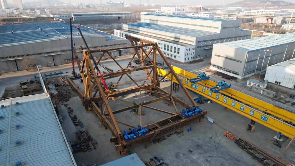 1月26日,通联科技厂区内,正在检修的智能装配造桥机。 人民日报记者 王思达 摄