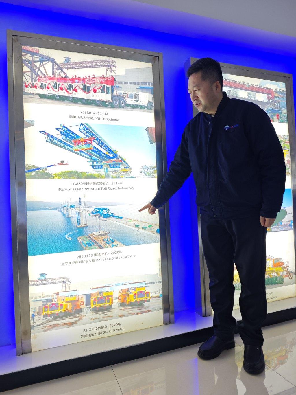 在通联科技的产品展厅里,一张拍摄于2018年的照片格外醒目。画面中,一台橘红色桥面吊机正在一座宏伟的跨海大桥上作业。