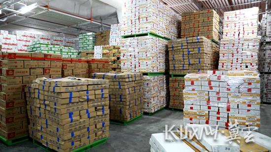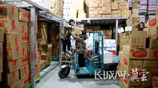 河北天环冷链物流有限公司展示中心商户周丽为客户备货。长城网·冀云客户端记者 张伟 摄