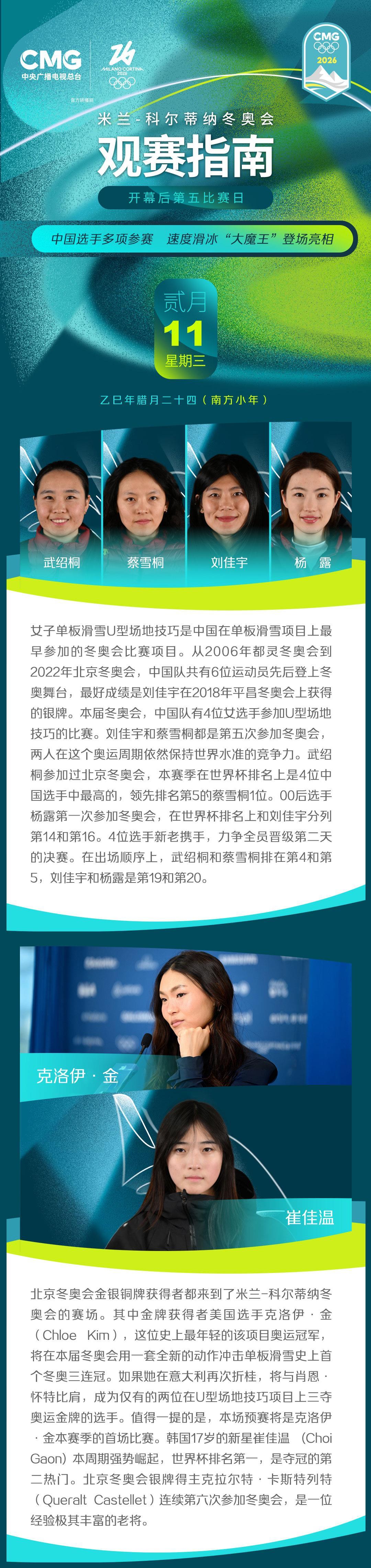 米兰-科尔蒂纳冬奥会开幕后第五比赛日,中国选手多项参赛,速度滑冰“大魔王”登场亮相。