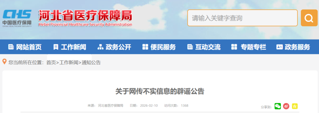 河北省医保局官网发布公告