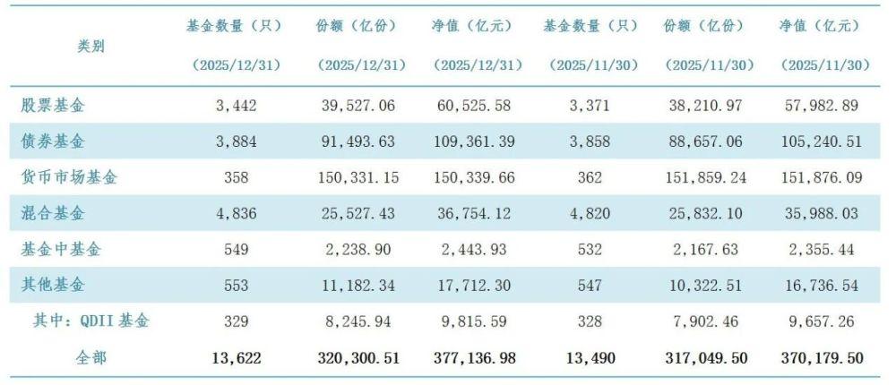 中国基金业协会最新发布的数据显示,截至2025年12月底,我国境内公募基金资产净值合计37.71万亿元。