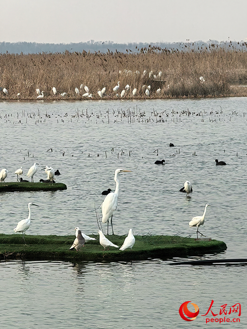 衡水湖樱花岛多种鸟类云集栖息。人民网 刘文邦 摄