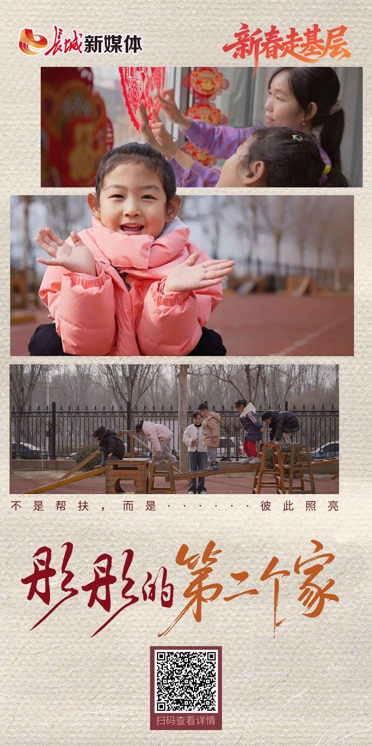新春将至,河北平山县,“爱心妈妈”聂利苹正握着彤彤(化名)的手,一起贴福字。