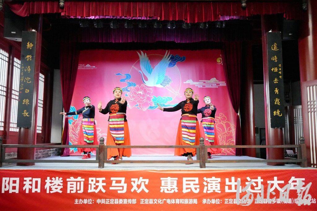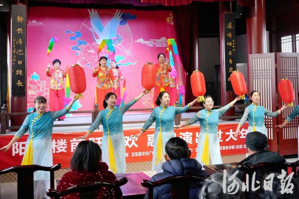 2月15日上午,群众在正定阳和楼惠民演出现场表演节目。河北日报记者 王伟摄