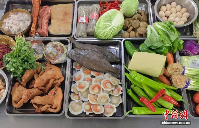 2月16日,雄安金融中心项目一工区准备的部分年夜饭食材。张建勋 摄