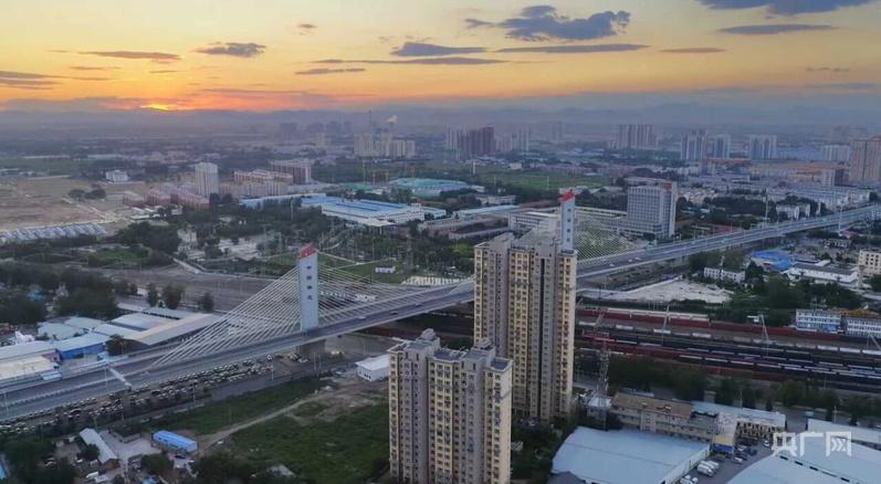 保定乐凯大街高架桥横跨铁路线,与城市建筑相映成景。(央广网发 保定市交通局供图)