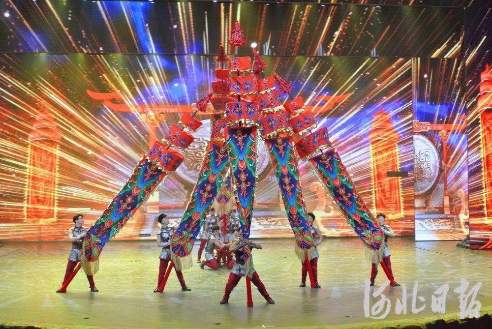 2月17日,在吴桥江湖大剧院,大型杂技剧《江湖·秀》的精品节目《龙跃神州——中 幡》精彩上演。 河北日报记者王雅楠摄