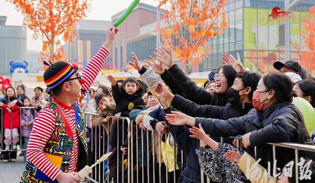 2月17日(大年初一),雄安奥特莱斯第三届新春嘉年华活动现场,居民观看演出,逛嘉年华市集,品特色美食。河北日报见习记者 康晓博 摄