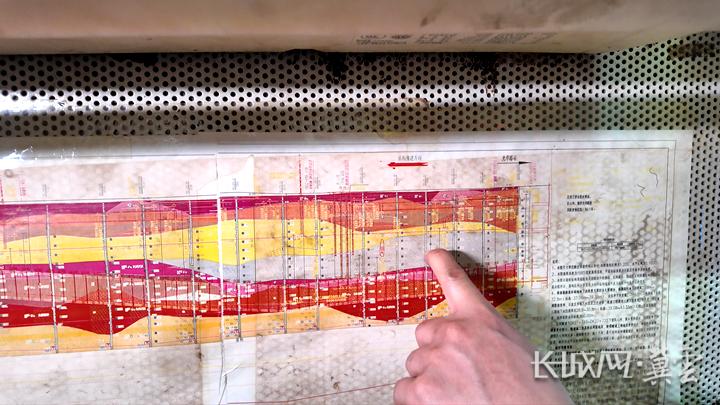 吴留洋指着墙上那张彩色地质图介绍土质情况。长城网·冀云客户端记者 李泽凯 摄