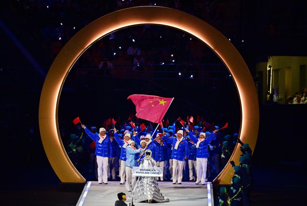 2月6日,中国体育代表团在开幕式上入场。新华社记者 陶希夷 摄