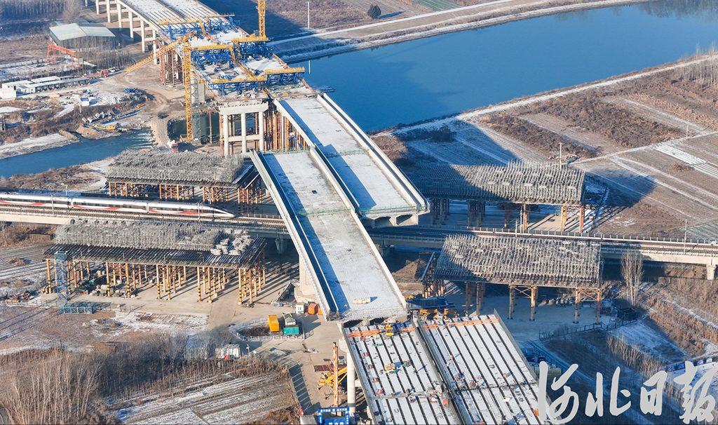 2025年12月23日,京雄高速二期上跨京广高铁转体桥完成转体。河北日报资料片