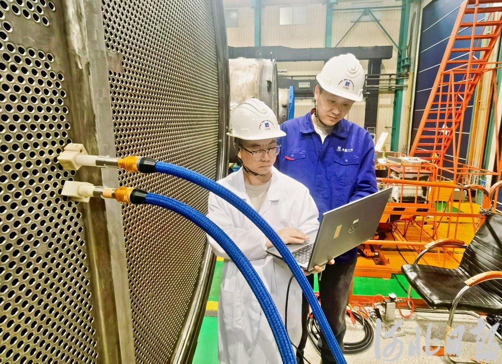 2月24日,在哈电集团(秦皇岛)重型装备有限公司,工人正在进行蒸汽发生器下部组件的涡流检测工序。河北日报记者 孙也达摄