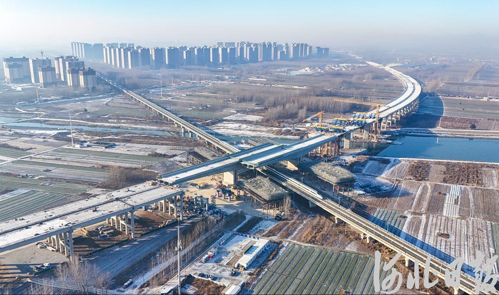 2025年12月23日,京雄高速二期上跨京广高铁转体桥完成转体。河北日报记者 李东宇 摄