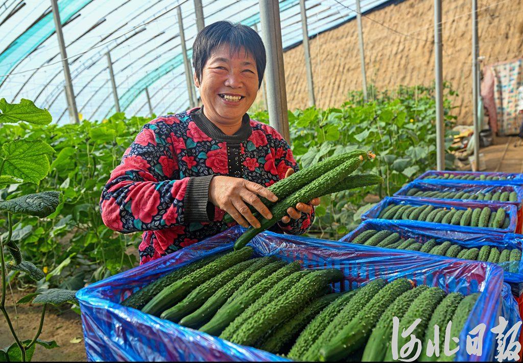2月4日,深州市西凌消村农民刘青梅在大棚里采摘黄瓜。河北日报记者 张昊 摄