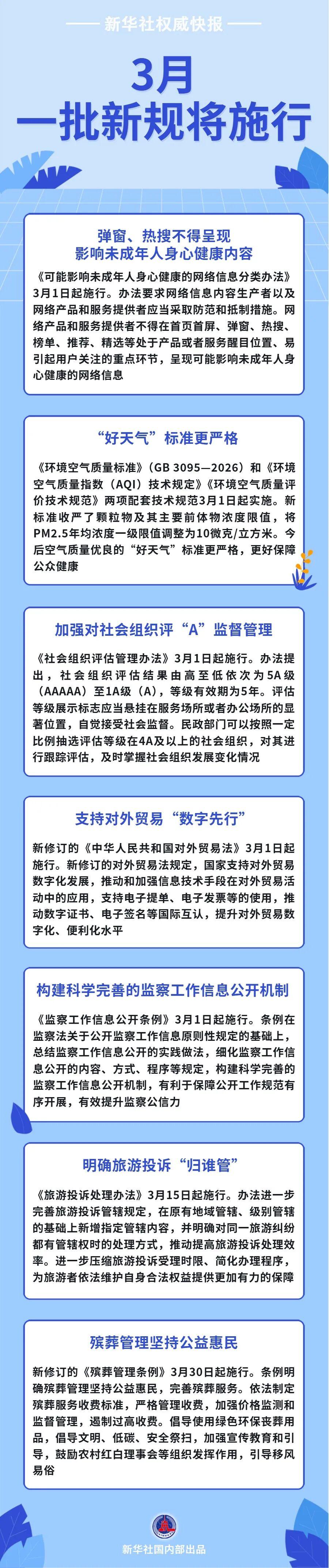 新华社权威快报丨3月,一批新规将施行