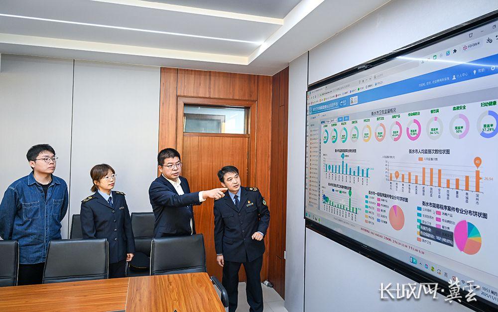 相关工作人员查看执法部门“扫码入企”情况。衡水市司法局 供图