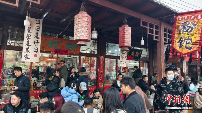 春节假期期间,蔚县暖泉古镇张全忠粉坨店门前食客络绎不绝。中新社记者 安英昭 摄