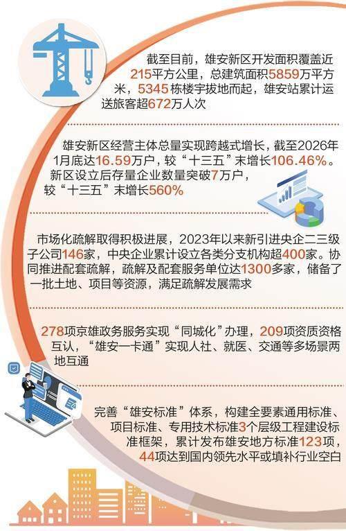 雄安新区设立以来,开发面积覆盖近215平方公里,总建筑面积达5859万平方米,5345栋楼宇拔地而起,现代化城市形象日益显现。