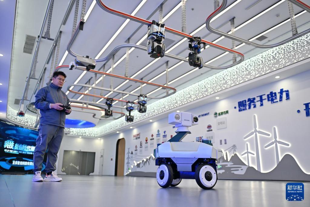 在雄安新区科创中心中试基地,工作人员在调试巡检机器人。图片来源:新华社