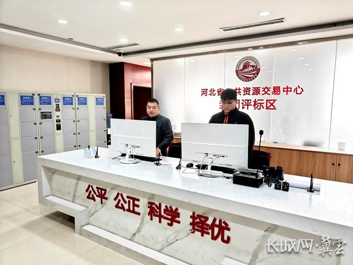 评标区前台的工作人员。河北省数据和政务服务局供图