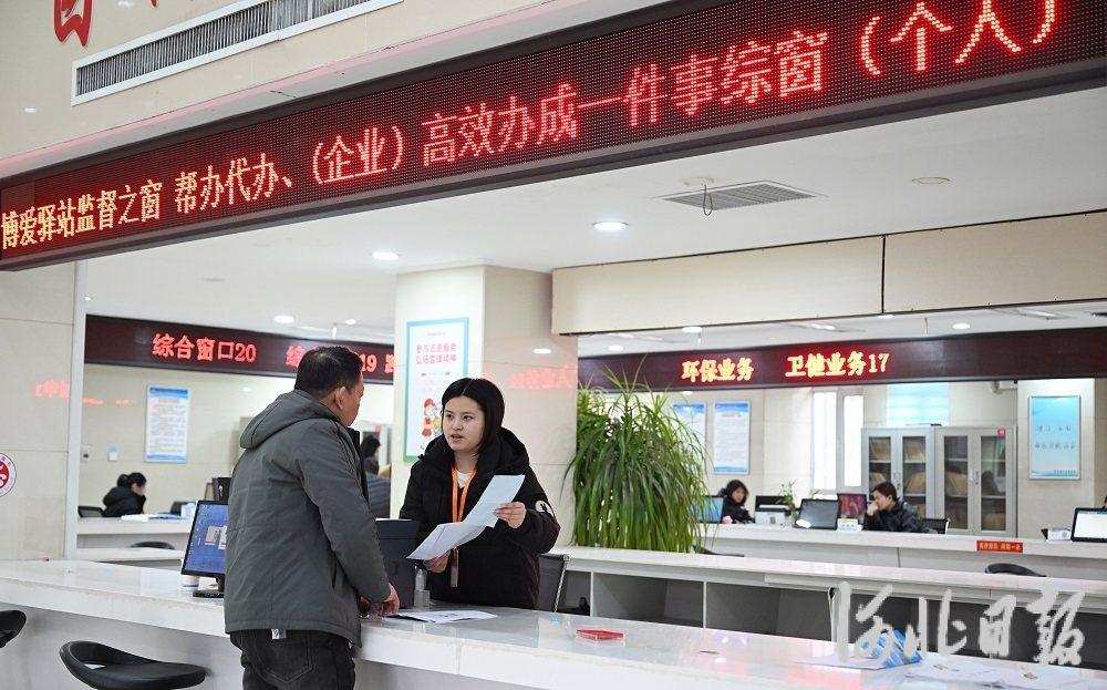 2月27日,平乡县政务服务大厅“高效办成一件事”专区工作人员在为群众办理相关业务。河北日报记者 赵永辉 摄