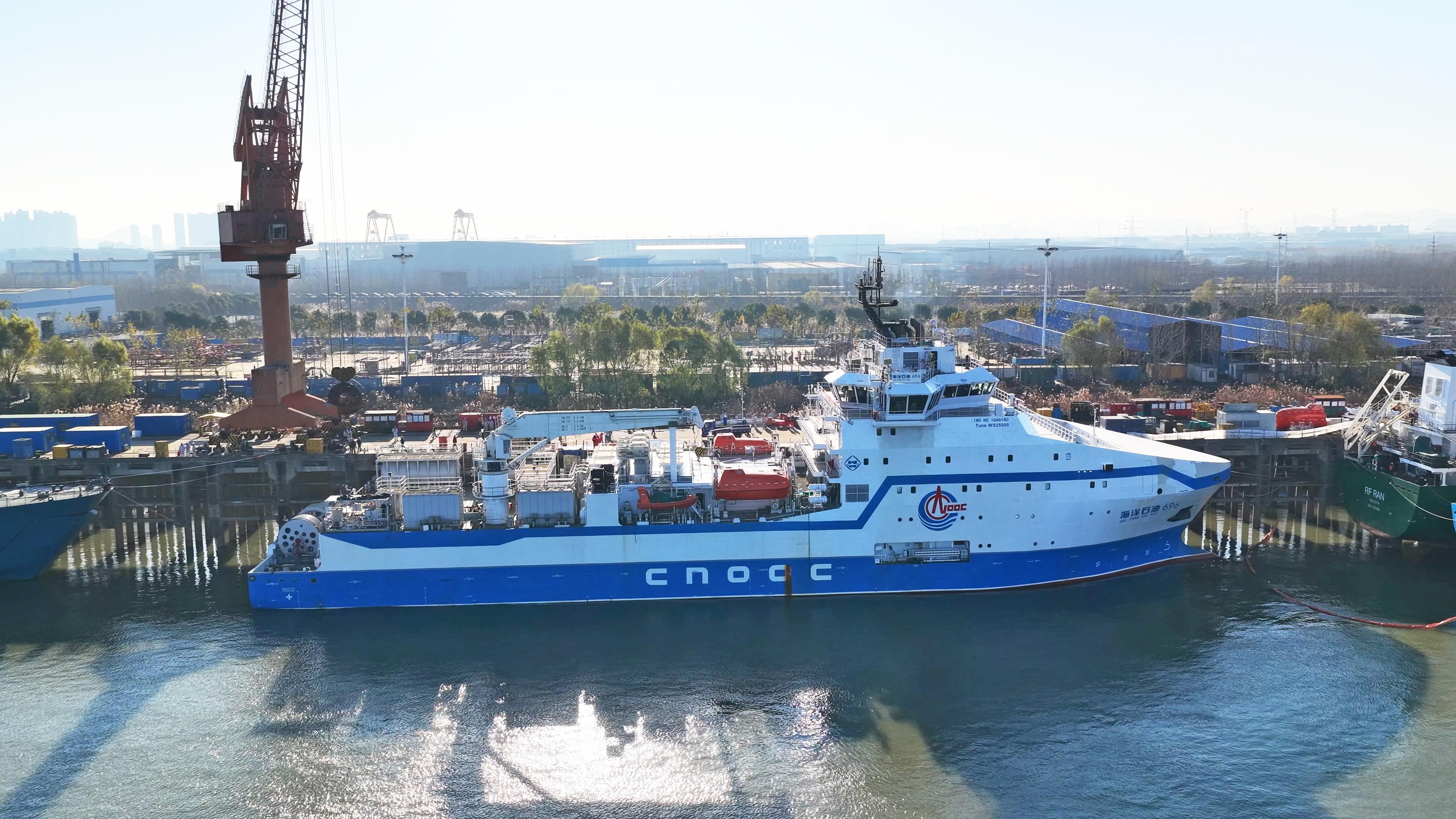 3月10日,我国首艘自主设计建造的集成式大型压裂工程船——“海洋石油696”在浙江舟山正式交付,填补了我国海上油气压裂增产技术与工程装备的空白。
