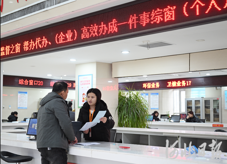 2月27日,平乡县政务服务大厅“高效办成一件事”专区工作人员在为群众办理相关业务。河北日报记者 赵永辉 摄