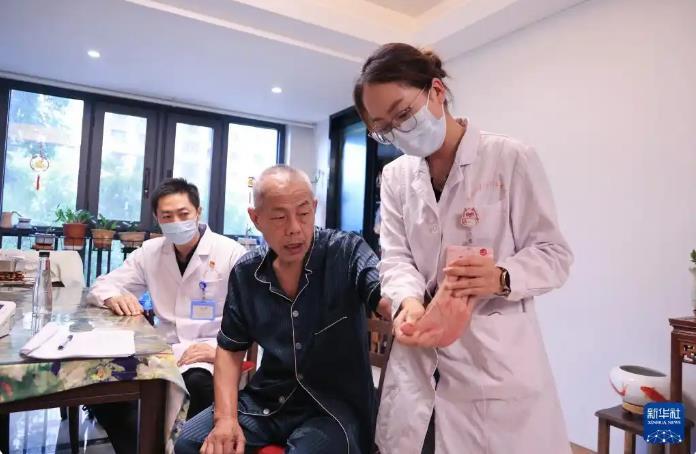 家庭医生入户为签约居民进行慢性病随访及康复评估训练指导。图片来源:新华社