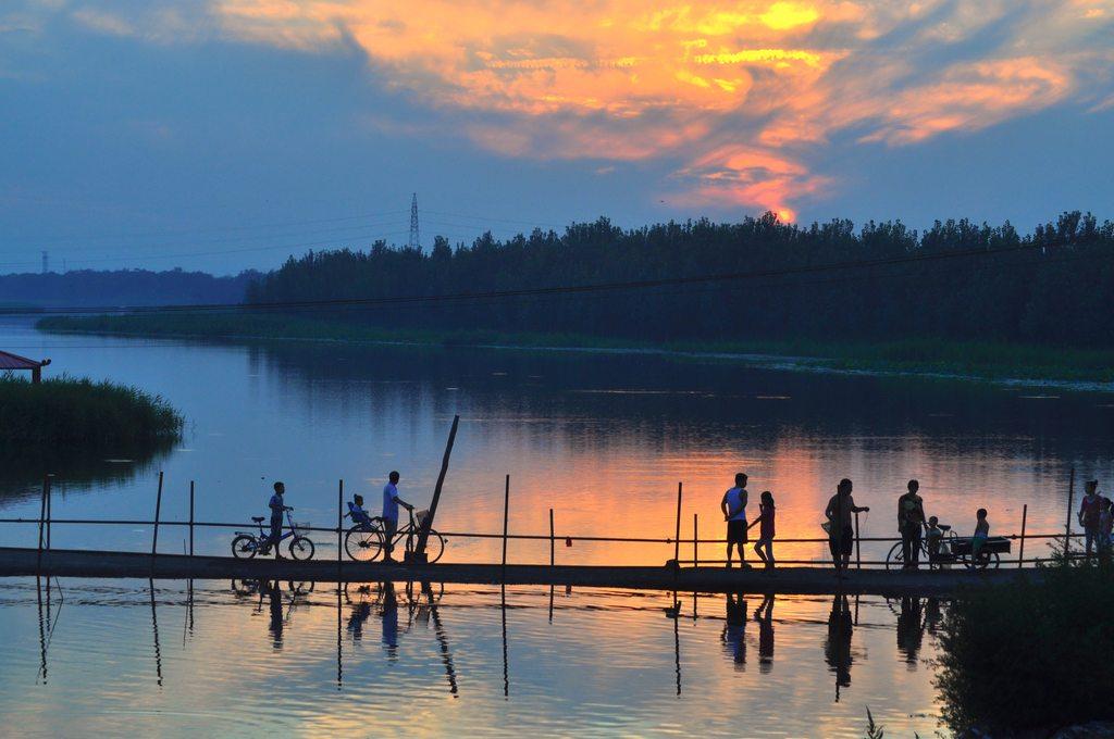 胜芳的诗意首先是自然形胜之美。夏秋丽日,站在古镇南端的长堤之上,目之所及,烟波浩渺,银浪闪烁,蒲苇丛生,水鸟成群。极目远眺,水天一色,碧波荡漾,一幅美丽的画卷。