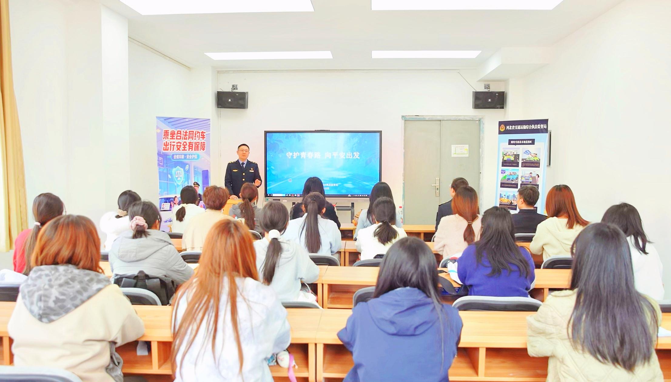 在河北师范大学商学院的教室内,针对大学生出行方式多样、社会经验尚浅的特点,执法人员以“守护青春路 向平安出发”为主题,通过真实案例视频和图片,层层揭开非法营运车辆的安全隐患:车辆无保障、驾驶员资质不明、无保险难维权。触目惊心的事故画面,让在场学生深受触动。“以前总觉得坐‘黑车’没那么严重,今天才意识到,每一次侥幸都可能付出代价。”大一学生吴同学感慨道。