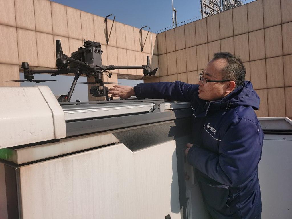近日,河北港口集团曹港股份技术信息部自动化技术员孙发森在检查巡检无人机。河北日报记者 贡宪云 摄