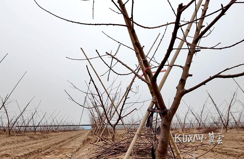 3月13日,衡水市饶阳县大官亭镇王岗村的鲜桃提质增效技术示范基地,几位工人穿梭在桃树间,手持电动剪,动作利索,手起枝落。