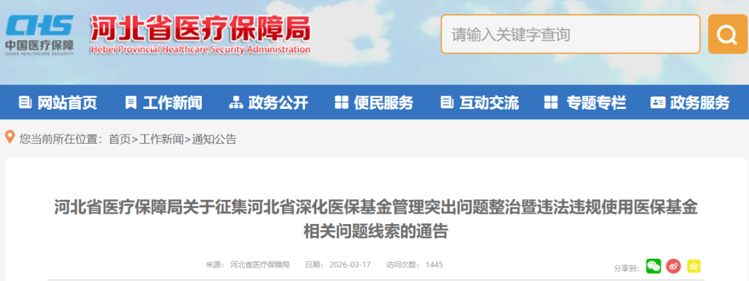 河北省医疗保障局官网发布通告