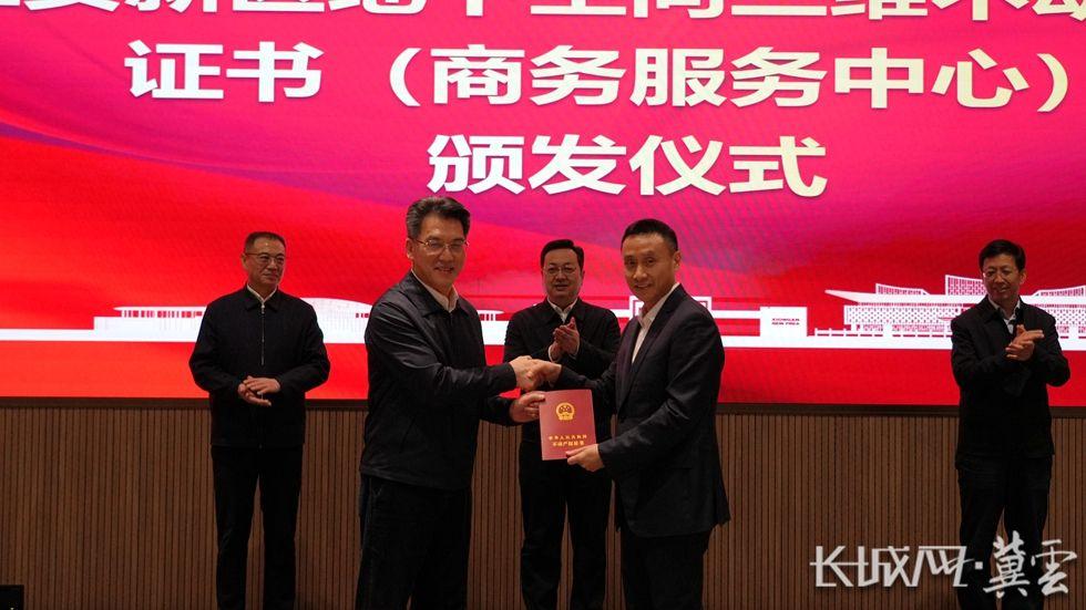 雄安新区为雄安商务服务中心项目颁发雄安新区首本三维不动产权证书。牛笑 摄